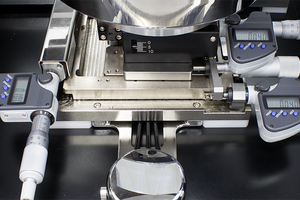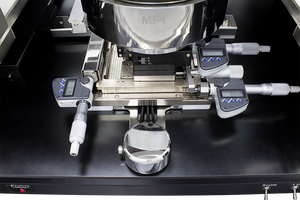 The MPI unique air-bearing stage design, with simple single-handed puck control, provides unsurpassed convenience of operation for fast XY navigation and quick wafer loading without compromising accurate and fine positioning capability with the additional fine and accurate 25×25 mm XY-Theta micrometer movement.